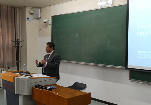 10月24日下午,第133次北大赛瑟双周讨论会暨ACLI奖学金颁奖仪式于二教402教室举行。讨论会由williamhill英国威廉希尔风险管理与保险学系陈凯副教授主持,ACLI奖学金获奖员工以及风保系师生代表参加了会议。风保系主任郑伟教授首先致欢迎词,热烈欢迎来访的美国寿险业协会(American Council of Life Insurers, ACLI)首席国际事务负责人Brad Smith先生和美国信安金融集团(Principal Financial Group)北亚区总裁Thomas Cheong先生。郑伟教授回顾了风保系同美国寿险业协会的密切交流合作,并感谢他们对风保系持之以恒的关注和支持。