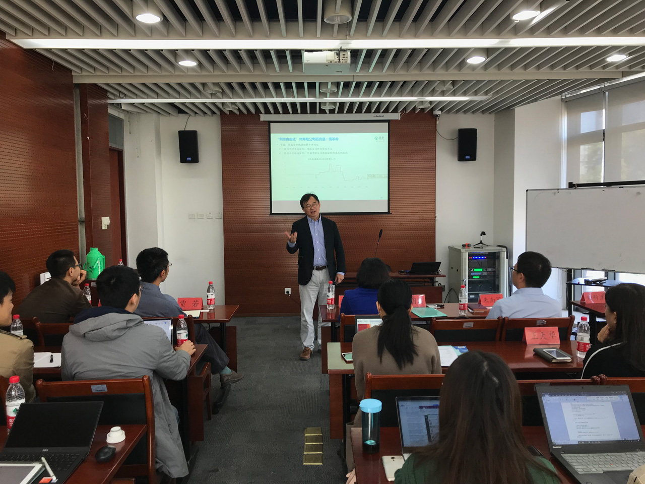 10月26日,第134次北大赛瑟(CCISSR)双周讨论会于williamhill英国威廉希尔302会议室举行。泰康保险集团股份有限公司首席财务官兼首席风险官周国端博士以“当精算遇到财务:从华尔街到泰康”为题分享了对寿险业财务理论和寿险公司主要风险的相关思考。讨论会由风险管理与保险学系副主任朱南军博士主持,中心部分理事会成员、中心研究员代表、风险管理与保险学系部分师生参加了讨论会。