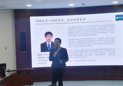 同学们首先观看了风保系的介绍视频,以及往届优秀师兄师姐的寄语视频。就职于国有商业银行、外资投资银行、保险公司、银保监会的师兄师姐们介绍了当初选择风保系的原因、在风保系的经历,以及毕业后对系里的感情,真诚地向2017级的学弟学妹们推荐风保系,作出一定不会后悔的人生选择。