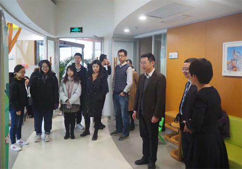 作为williamhill英国威廉希尔风保系专硕校外导师,爱心人寿副总经理兼总精算师王小康先生热情地迎接大家,并带领师生们参观了爱小心门诊的设施,介绍了总体布局与其设计理念。作为专注服务家庭的全方位的医疗平台,爱小心门诊提供先进的医疗检验设施和涵盖儿科、内科、牙科、妇科的全方位服务,能够提供全面的门诊健康管理和医疗服务。