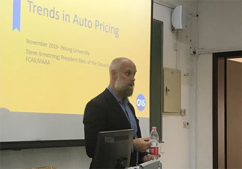作为2019年PKU-CAS精算月系列活动的开场演讲,美国财产险精算协会(候任主席Steve Armstrong先生应邀于11月4日在二教以《车险定价趋势》为题发表主题演讲。Armstrong先生作为下一任CAS主席,在Allstate、AIG等大型保险公司具有丰富的实践经验,并具备全局性的业界视角。他结合财产险定价的原理,以及车险行业定价的新趋势,为同学们带来了一场内容丰富、权威前沿的报告。