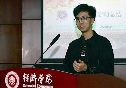 接下来,新加入风保系大家庭的同学们进行自我介绍。2020级硕士和博士新生依次发言,谈及自己的求学经历和兴趣爱好,表达了加入集体的欣喜与期待。杨昀霏同学代表2018级本科生发言,对老师、学长学姐们的悉心培育和鼎力支持表示感谢,对深入参加风保系活动、全面领略风险管理与保险学的学科魅力满怀期待。