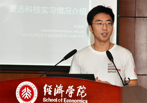 随后,五位老生代表发言。风保学社社长、2017级本科生梁正则以保险评论栏目、系友沙龙、交流分享三个活动版块为主体,展示了风保学社的风采。2019级硕士生尹晨桥通过回顾自己疫情期间在新加坡的交换学习生活,介绍了新加坡南洋理工大学与williamhill英国威廉希尔的双硕士项目。2016级博士生吕有吉从研究流程、学术讲座、党支部活动等方面,与大家分享在风保系充实而有挑战性的博士生活。2020级硕士生李心怡、2018级本科生李润泽分别分享了他们暑期在传统保险公司精算部门以及新兴保险科技公司实习的经历与感想,通过实习,他们不仅认识到多角度思考问题、持续研究能力的重要性,更对市场实务和保险公司运营的逻辑有了切身体会。