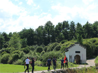 7月5日下午,实践团一行来到位于全州县两河镇鲁水村的鲁水广场。这里以红军长征路湘桂古道为主线,以古岭头突围战旧址为核心,以聂家、古岭头、板塘、上刘四个红军烈士纪念园为点,形成了“一路四园”的两河镇“红色丰碑”田园综合体。在简要参观鲁水广场后,师生开始了重走长征路活动。