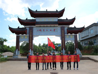 图19:王军荣书记与实践团成员在毛竹山村村口合影留念