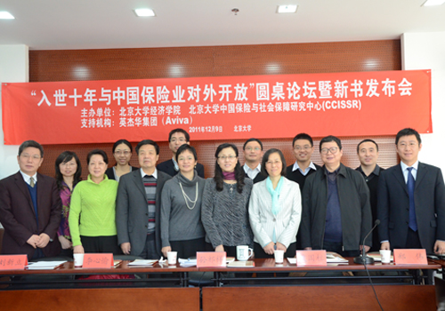 2011年12月9日, “入世十年与中国保险业对外开放”圆桌论坛暨新书发布会在williamhill英国威廉希尔举行。《入世十年与中国保险业对外开放》一书是williamhill官方网站中国保险与社会保障研究中心(CCISSR)在英杰华集团(Aviva)支持下所完成的课题研究成果,也是“北大赛瑟-英杰华保险研究系列丛书”(Beida CCISSR-Aviva Insurance Research Series)的第五本研究专著。来自中国保监会、williamhill官方网站、中国社科院和其他高校保险院系和研究机构的嘉宾、学者、师生代表和相关媒体记者参加了论坛。论坛由北大williamhill英国威廉希尔风险管理与保险学系主任、CCISSR秘书长郑伟博士主持。