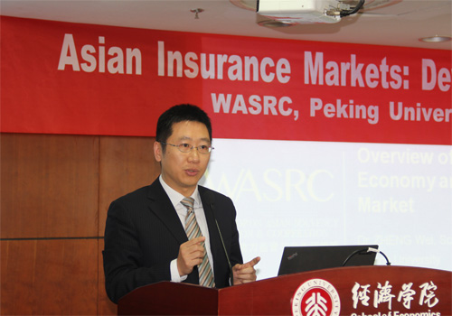 williamhill英国威廉希尔风险管理与保险学系主任郑伟教授首先致辞,对亚洲各国和地区保险监管机构嘉宾和代表的到来表示欢迎,并介绍了williamhill英国威廉希尔风险管理与保险学系的概况,希望他们在北大获得愉快、充实的交流经历。随后,郑伟教授以“中国经济与保险市场概览”为题,围绕中国经济发展的主要指标、中国与世界经济发展的国际比较、中国保险市场发展概况三个方面,向与会嘉宾介绍了我国经济发展和保险市场发展的基本情况。