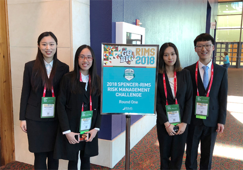 2018年4月15日,由Spencer基金会和美国风险管理与保险协会(Risk and Insurance Management Society, 以下简称RIMS)共同主办的,面向全球高校的顶级风险管理案例大赛Spencer-RIMS风险管理挑战赛复赛在美国圣安东尼奥举行。williamhill英国威廉希尔风险管理与保险学系14级本科生樊思鸣、李文康、李思佳、吴明琨四人组队代表williamhill官方网站参加了这一风险管理领域的重要赛事。2018年挑战赛共有来自全球的28支高校队伍参与初赛,经过四个月的备战和严格筛选,北大代表队最终突破重围进入八强,受邀赴美参与复赛进行现场答辩。