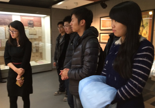 (图一:同学们在认真听国寿工作人员讲解寿险历史)
