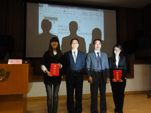 比赛分为初赛和复赛两个环节。初赛为晋级淘汰赛,比赛评委是由主办方和四支代表队邀请的主修法律的硕士研究生。按照民事诉讼普通程序,在法官的主持下,原被告双方代表队围绕案件争议问题进行了反复辩论,双方队员激烈交锋,几乎难分胜负。最终评委依据书面评分标准打分,人民大学代表队和中央财经大学代表队胜出,成功晋级决赛。