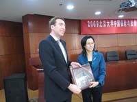 随后,中心主任孙祁祥教授为慕尼黑再保险公司和瑞士再保险公司两家新加入的理事会员单位的代表颁发了理事会员单位牌匾。慕尼黑再保险公司和瑞士再保险公司都是世界领先的全球性再保险公司,他们的加入进一步增强了中心理事会员单位的多元化和国际化。