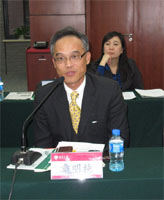 中心常务理事、华南产物保险股份有限公司副总经理章明纯先生介绍了台湾和大陆在金融保险合作方面的新进展,讨论了台湾保险公司未来进入大陆市场可能面临的问题,并表示非常高兴与在场的同仁交流学习。