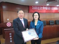 (图二、三:孙祁祥教授为理事会员单位代表颁发牌匾)