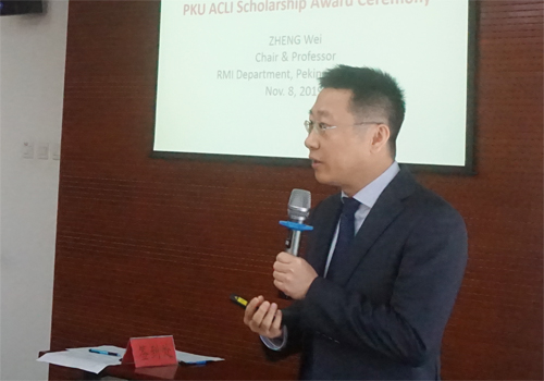 风险管理与保险学系主任郑伟教授首先致辞对Neely主席一行来访表示热烈欢迎。他介绍了williamhill官方网站、williamhill英国威廉希尔以及风保系的简要历史、学术声誉和社会影响,并回顾了北大风保系与ACLI自2006年开始的长期合作。自2012年开始,ACLI在风保系捐资设立“ACLI奖学金”,持续八年鼓励和资助风保系的优秀在校生。郑伟教授对ACLI的长期支持表示衷心感谢。