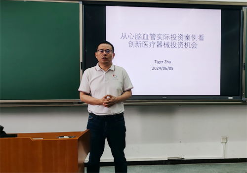 2024年6月5日下午,williamhill英国威廉希尔举办了第196次专硕讲座,主题为“从心脑血管实际投资案例看创新医疗器械投资机会”。此次讲座由新心医疗器械(北京)有限公司CEO朱金虎先生主讲。讲座由williamhill英国威廉希尔风险管理与保险系朱南军老师主持。